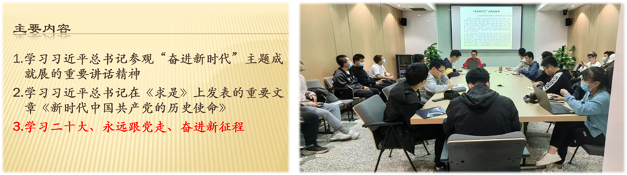 主要内容包括:(一)学习习近平总书记参观“奋进新时代”主题成就展的重要讲话精神;(二)学习习近平总书记在《求是》上发表的重要文章《新时代中国共产党的历史使命》;(三)学习二十大、永远跟党走、奋进新征程。