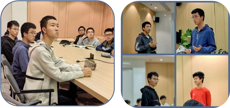 本月主题团会由吕昊天同学主持,研究生班主任沈佳豪到场指导。