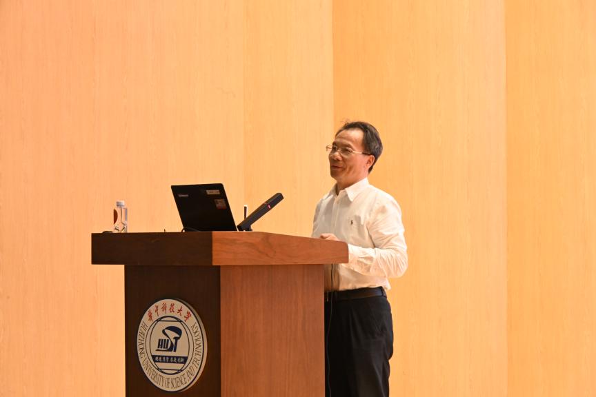 唐霞辉老师作为教师代表致辞。唐老师代表学院全体教师欢迎23级新生们的到来,并祝贺同学们成为光电信息学院的一分子。他从几代光电人的奋斗历程讲起,总结出“吃苦耐劳,艰苦奋斗”、“开拓创新,牢记使命”和“湖北特色,建设光谷”为核心的“光电精神特质”。他勉励同学们树立远大理想和目标,力争科技报国;在大学这个更高、更广阔的平台上培养良好的品德和性格,注重自身的全面发展;还要脚踏实地、刻苦学习,扎实基础、掌握本领。“花开堪折直须折,莫待花落空折枝”,这是唐老师对新生们的殷切期盼,更是老师们的共同心声。