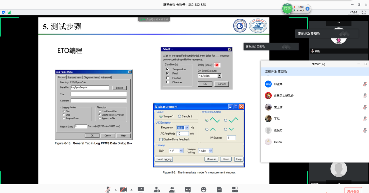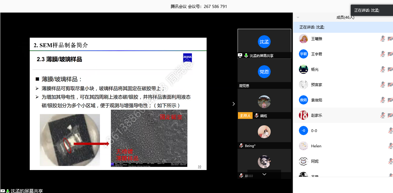 在总结第一次培训的经验上,平台坚持每周开展一次培训。沈孟博士生主讲的场发射扫描电镜云培训,贾云翔博士生主讲的综合物性测量系统云培训,熊炫老师和隆宇硕士生主讲的X射线衍射仪云培训,熊炫老师主讲的脉冲激光沉积解和苏东博士生主讲的真空蒸发设备云培训纷纷亮相。