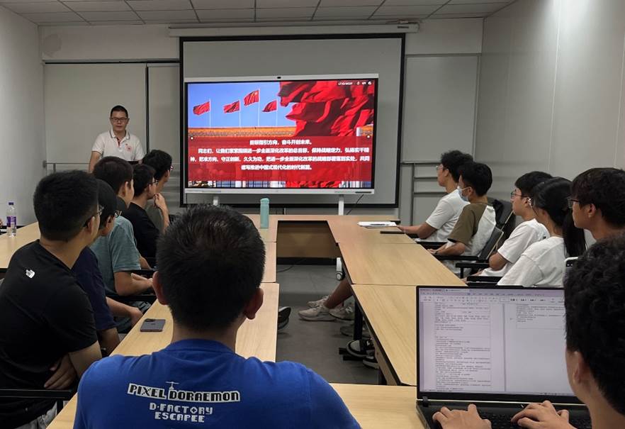 (通讯员 祝嘉磊)2024年9月12日,光电2310班团支部在光电大楼C667开展了一场以“以进一步全面深化改革开辟中国式现代化广阔前景”为主题的团课学习活动,本次团课由团支书王祎鸣主讲,班级全体同学积极参与,现场学习氛围浓厚。