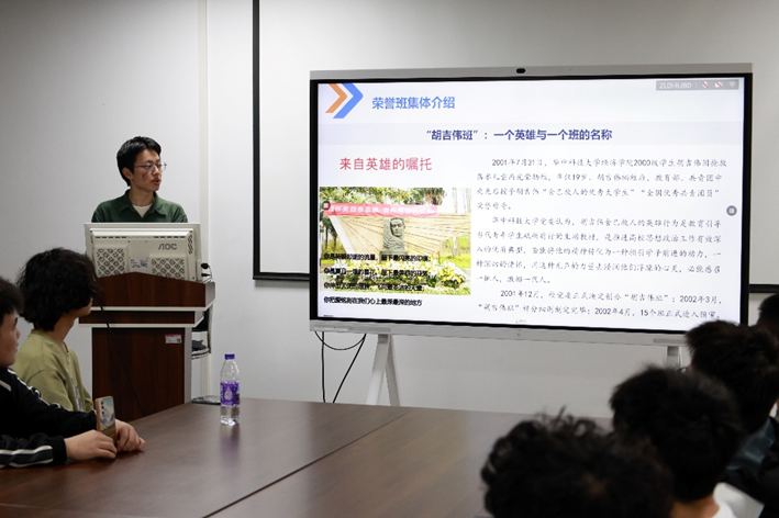 他结合自己的感受分享道,“胡吉伟班”所代表的不仅仅是一个荣誉称号,更是一种责任担当、团结协作、追求卓越的精神象征。多年来,历代“胡吉伟班”学子在学习、社会实践、志愿服务等方面都取得了优异的成绩,为全校师生树立了榜样,这种精神激励着一届又一届的同学奋勇前行。