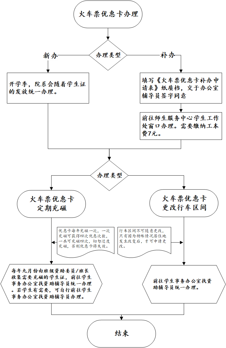 优惠卡充磁。可在每年九月份由班级资助委员或者班长收集班级需要充磁的学生证,前往学生事务办公室找资助辅导员统一办理。若有需要,可自行前往学生事务办公室找资助辅导员办理。