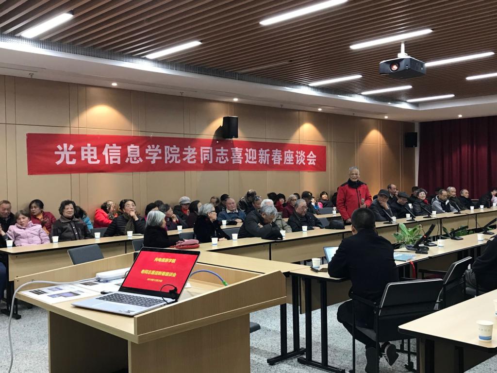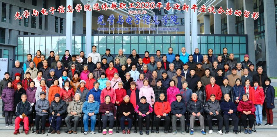 元旦前夕,学院邀请一百多位退休教职工参观了最近启用的新光电信息大楼,举行了迎接新年座谈会,还安排专业人员在新大楼为全体老师拍下了珍贵的合影。