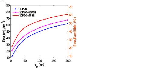 团队使用双波段和多谱线技术,基于六温度模型和随机旋转弛豫模型,优化了短脉冲CO2激光在轴快流CO2激光放大器中的放大效率,成功证明了与单线10P(20)放大相比,10.6μm与9.6μm双波段双线15ns脉冲的提取效率提高了约70%,强于10.6μm单波段四线放大。此外,该研究不仅可以为短脉冲CO2激光在轴快流CO2激光放大器中的高效放大提供理论支撑,还可以优化放大器参数,以获得更高的放大输出能量。