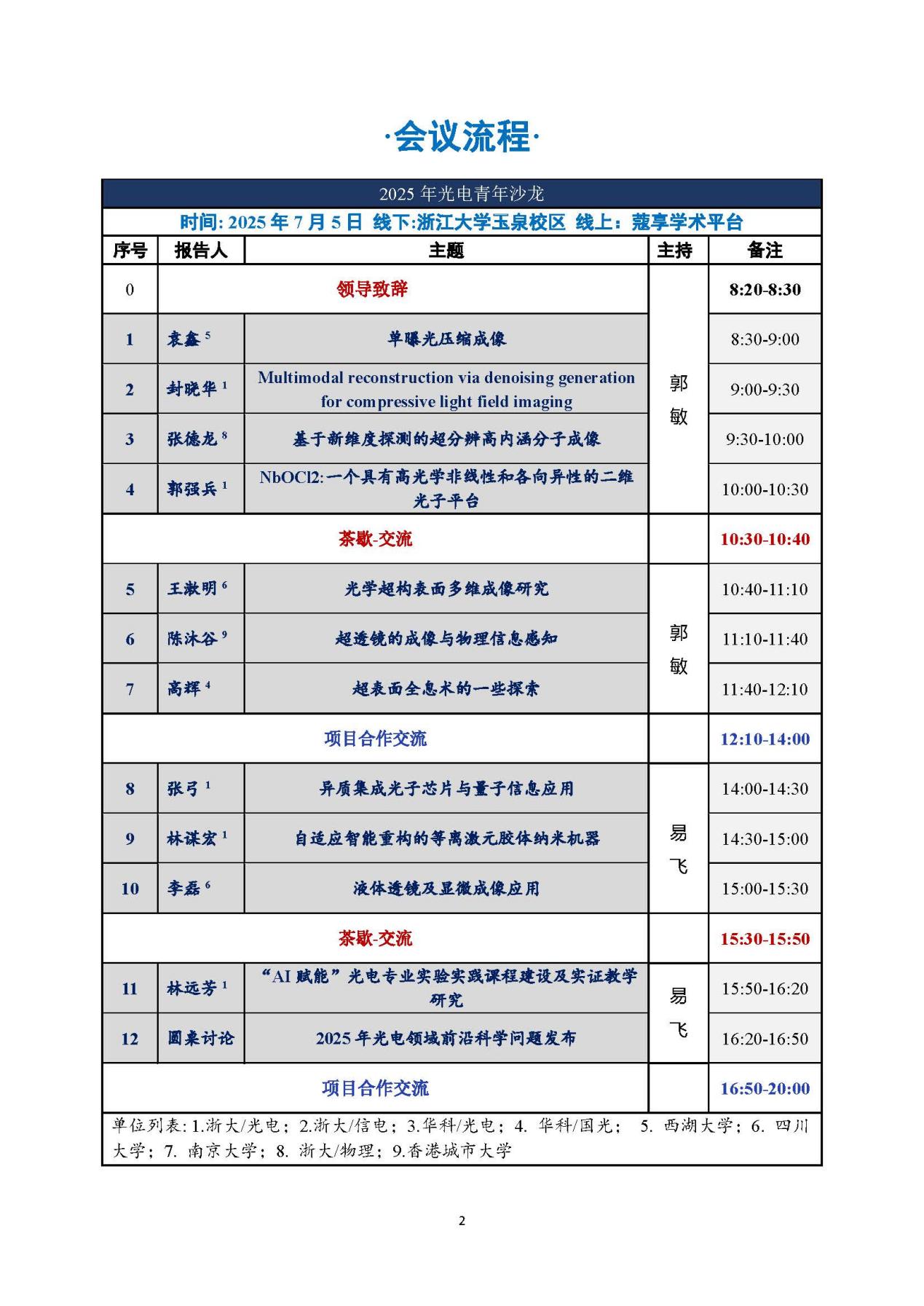 7月5日,由浙江大学光电科学与工程学院、william威廉中文及武汉光电国家研究中心联合主办的第八届“光电青年沙龙”在浙江大学玉泉校区圆满落幕。本届沙龙汇聚了来自西湖大学、南京大学、四川大学、香港城市大学等海内外十余所顶尖高校与研究机构的青年才俊,以“发现未来的战略科学家”为宗旨,围绕“智能光子”时代下的计算成像、光学超构表面和量子信息等前沿领域展开了深入探讨。