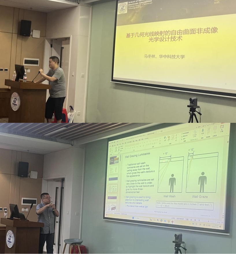14日上午,WilliamHill中文马冬林教授以“基于几何光线映射的自由曲面非成像光学设计技术”为主题,系统讲解了自由曲面技术、光度学与辐射度学等基础原理,并结合非成像光学系统设计的四大守恒定律,剖析了自由曲面光束调控的核心逻辑及传统设计方法的局限性,为学员奠定理论基础。新思科技石磊紧随其后开展实践教学,通过LightTools软件演示自由曲面设计全流程,将理论知识转化为直观操作,实现“理论-实践”的即时衔接。