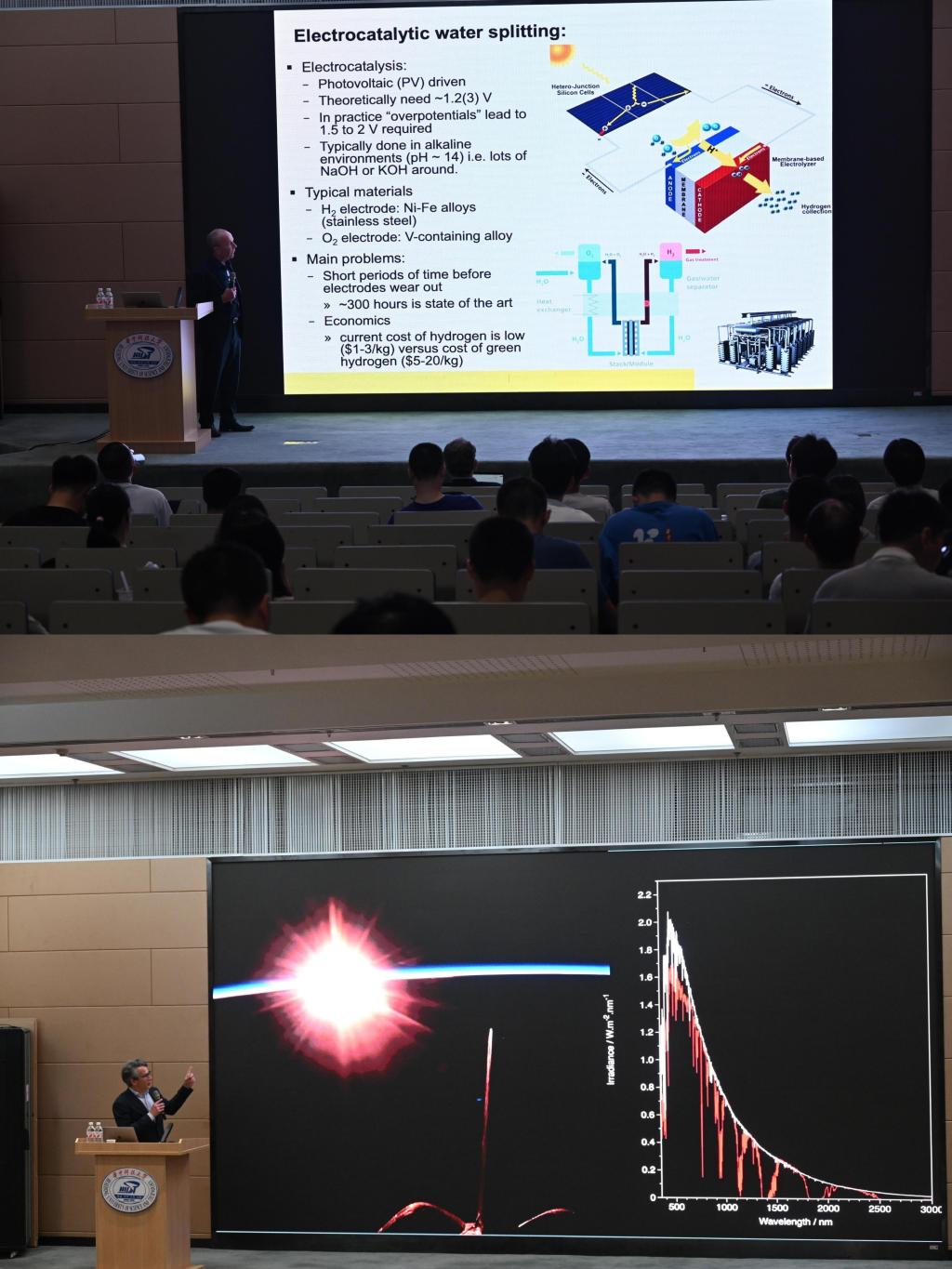 17日上午,新南威尔士大学光伏学院代理院长Prof.Gavin Conibeer阐述“低碳能源技术”,解析三代生物燃料、绿氢及可持续航空燃料(SAF)的低碳潜力,提出航空脱碳的技术路线图。17日下午,新南威尔士大学Prof.N.J.Ekins-Daukes从太阳光谱特性出发,讲解日间太阳能与夜间辐射能量的转化原理,并预测太阳能电池的未来演进方向(如效率提升、应用场景拓展)。