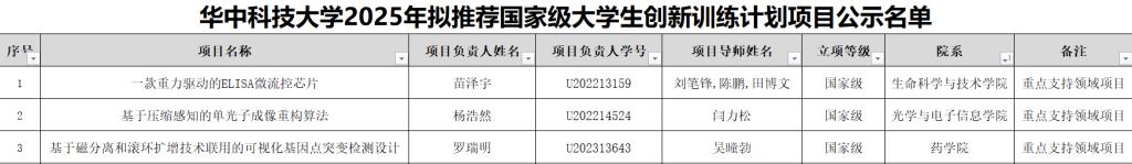 据悉,教育部“国创计划”在类别上从2021年起分为一般项目和重点支持领域项目两类。重点支持领域项目旨在引导大学生面向国家经济社会发展和重大战略需求,结合创新创业教育发展趋势,在重点领域和关键环节取得突出创新创业成果。2025年,我院申报并获批1项重点支持领域项目,占全校入选数量的三分之一。